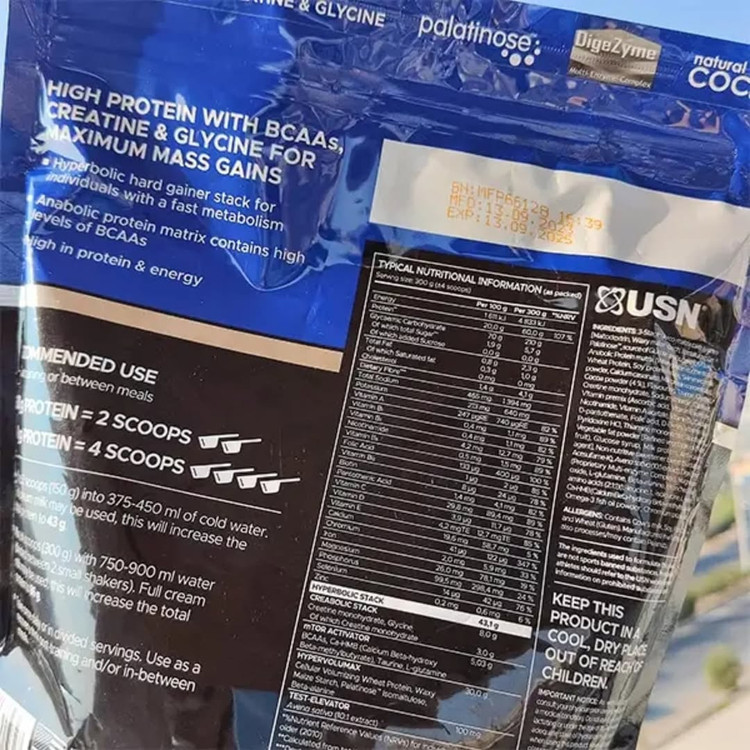 . مکمل مس حرفه ای آنابولیک یک کیلویی یو اس ان مکمل یو اس ان با ترکیب منحصر بفرد خود در هر وعده دارای 63 گرم پروتئین و سطوح بالایی از اسیدهای آمینه زنجیره ای و اسید گلوتامیک می باشد. بی سی ای ای ارائه شده در نقش مهمی در سنتز پروتئین داشته و سرعت رشد و ترمیم عضلانی را افزایش می دهند ویژگی های هایپربولیک مس gH جدید یو اس ان : افزایش دهنده وزن افزایش دهنده سایز و حجم عضلات پشتیبانی از سنتز پروتئین عضلانی بهبود بازیابی و ریکاوری عضلات انرژی زا افزایش دهنده ی قدرت و عملکرد عضلانی کمک به جلوگیری از تجزیه توده های عضلانی تامین کننده ی سوخت عضلات 2 کیلو گرم